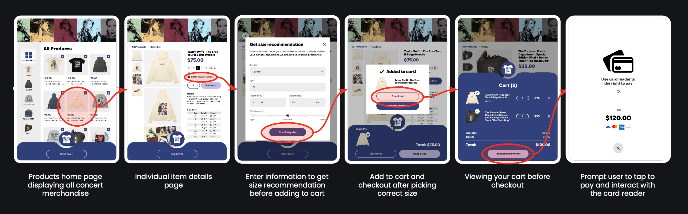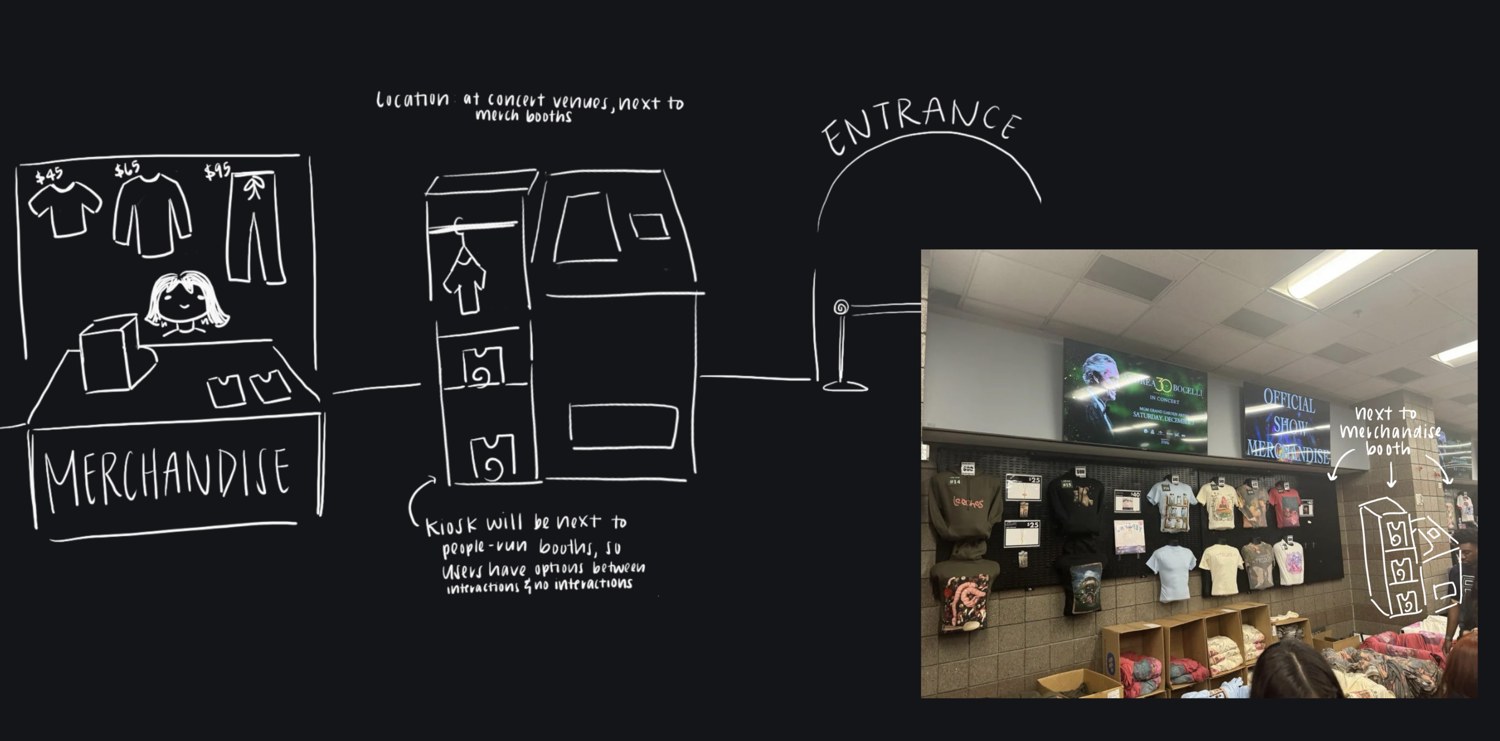 For our fieldwork, we observed 1 concert merchandise line (Sabrina Carpenter's Short n’ Sweet Concert @ Chase Center San Francisco), and 3 interactive kiosks (Popmart & Benefit Vending Machine and Uniqlo self-checkout). Observing the concert merch line was helpful to understand the built enviroment and the target audience for our kiosk. While observing kiosks gave us a better sense of how people interacted with product-dispensing kiosks.