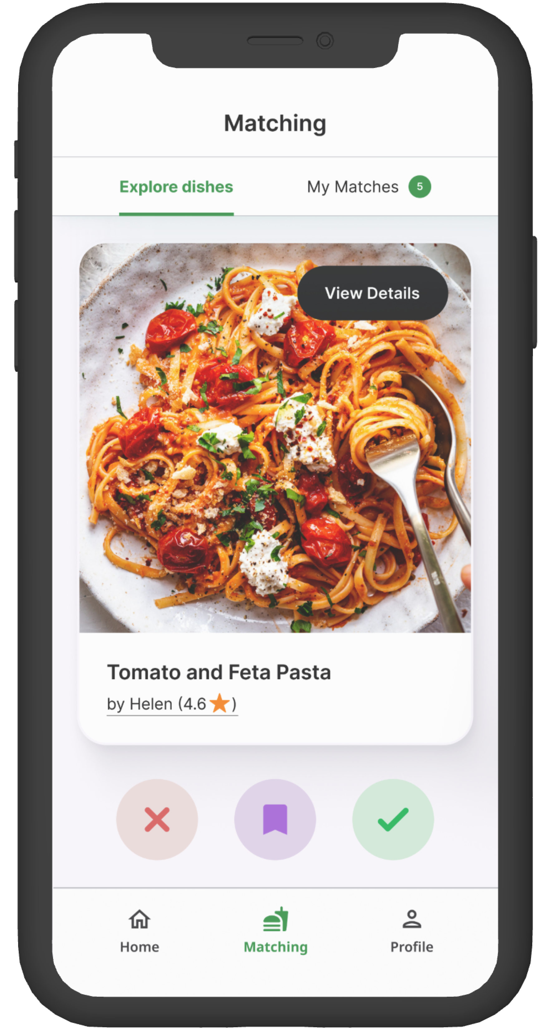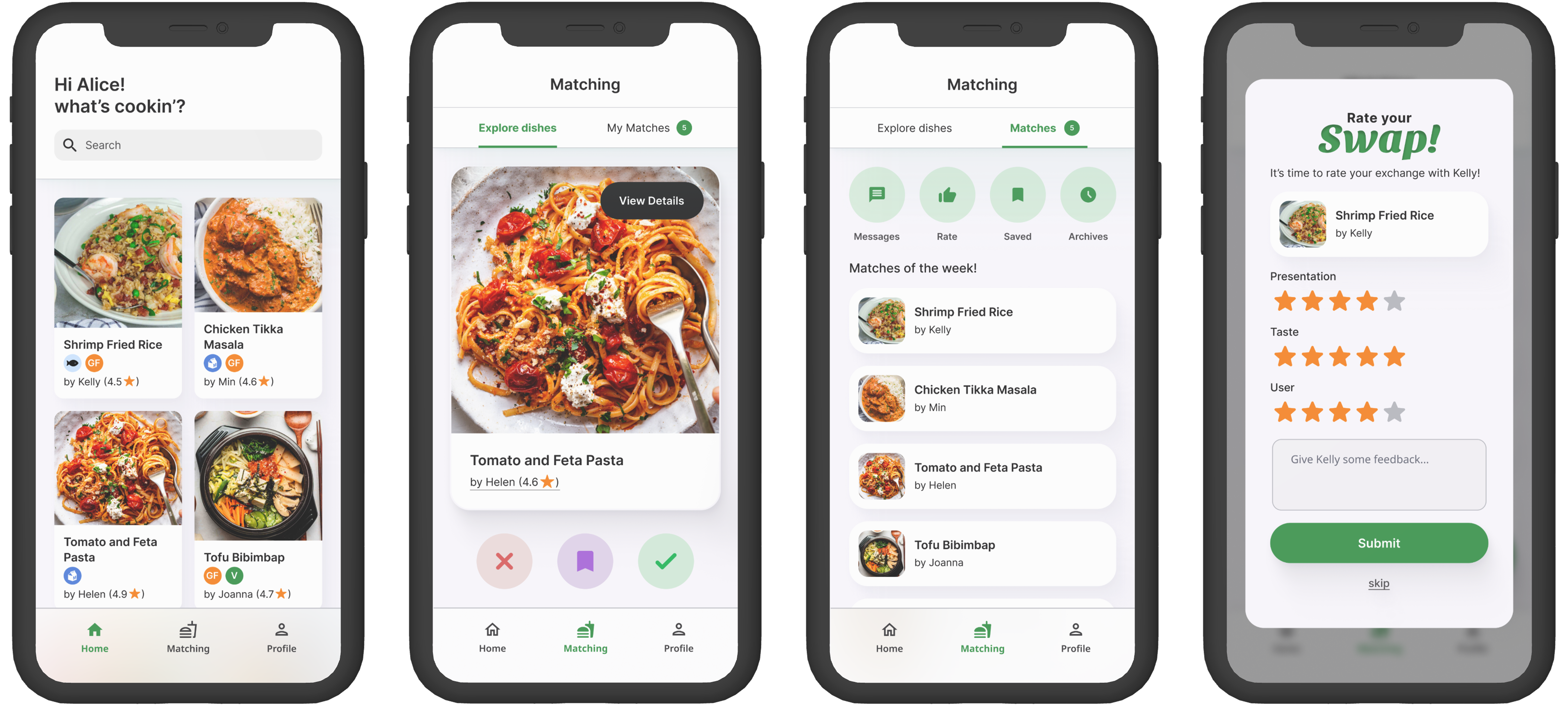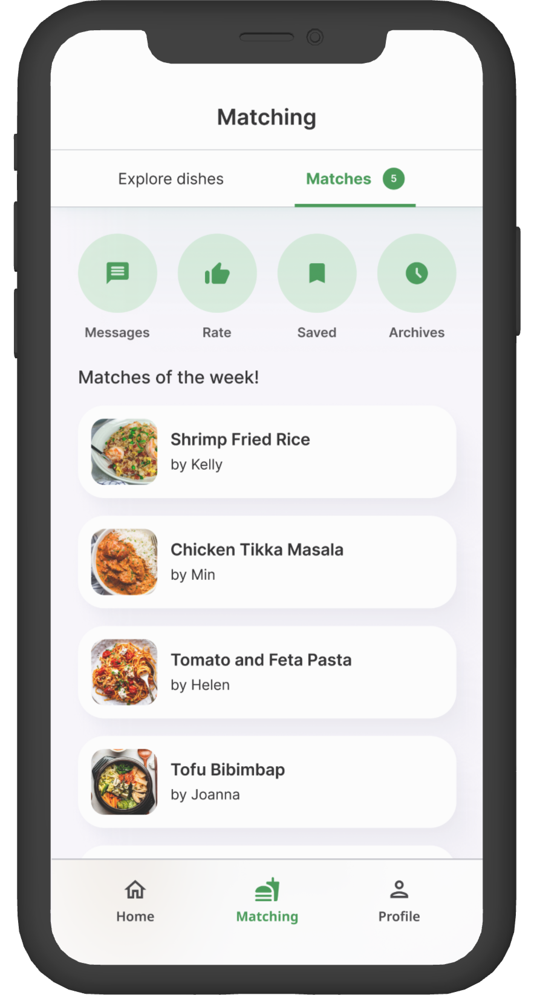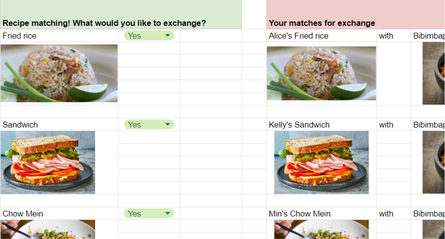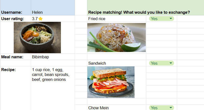 Users decide if they would like to exchange meals on the left; matches automatically appear on the right.