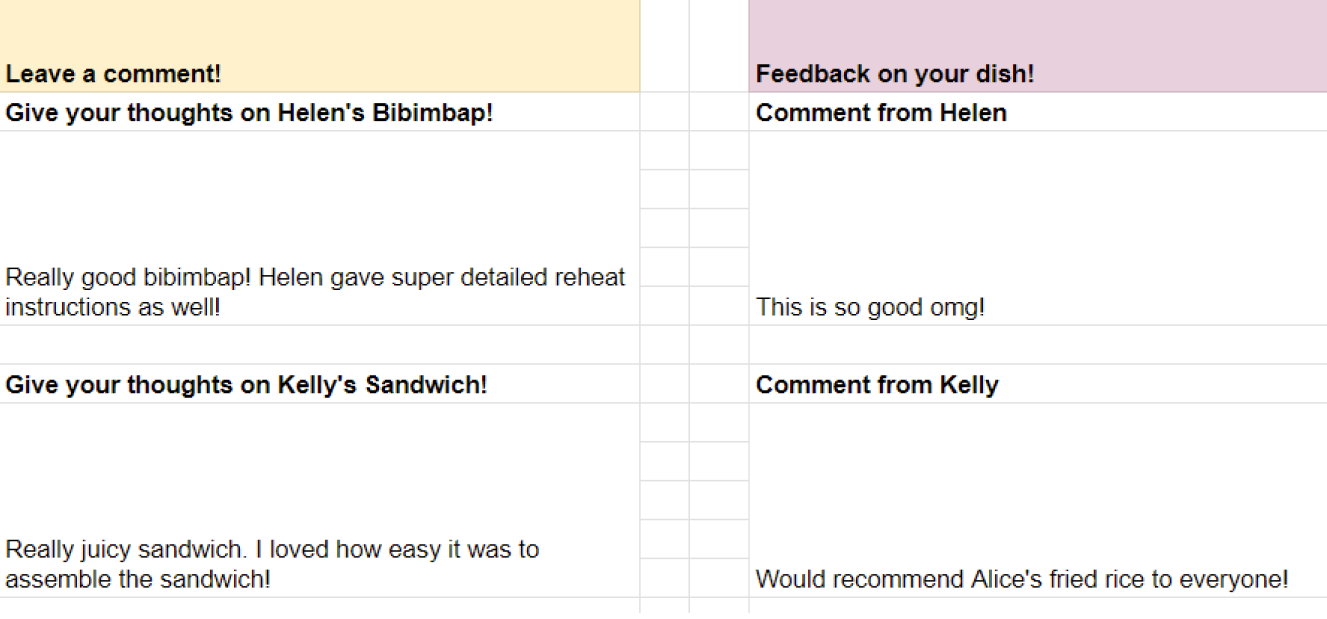 - "I think it [meal prepping] is fast and convenient because it saves a lot of time cooking. However, I personally like to each fresh cook food because it just tastes better than meal prep. Moreover, meal prepping may get repetitive food over the week and have left over if you can finish it on time which eventually be in the trash can. It would be good for people who like it and can finish all the food."