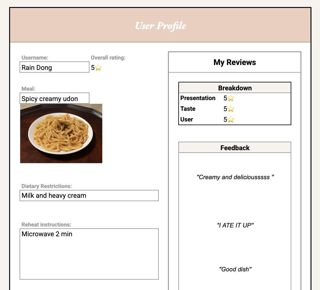 Users can upload an image of their dish, the recipe, and reheat instructions.